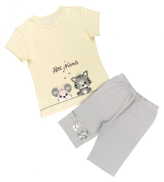 Donella Dievčenské bavl. pyžamko, kr. rukáv + kraťasky – Best Friends, žltá/sivá, 134/140