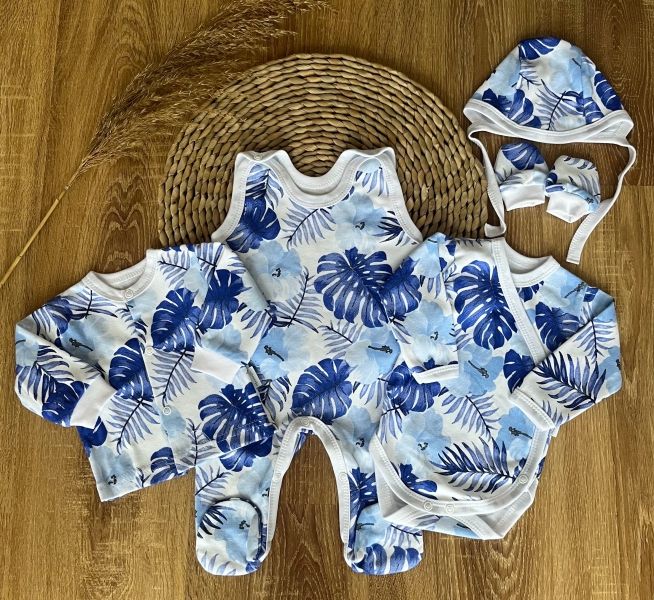Novorodenecká sada do pôrodnice Mamatti, Listy, modrá, biela, veľ. 62