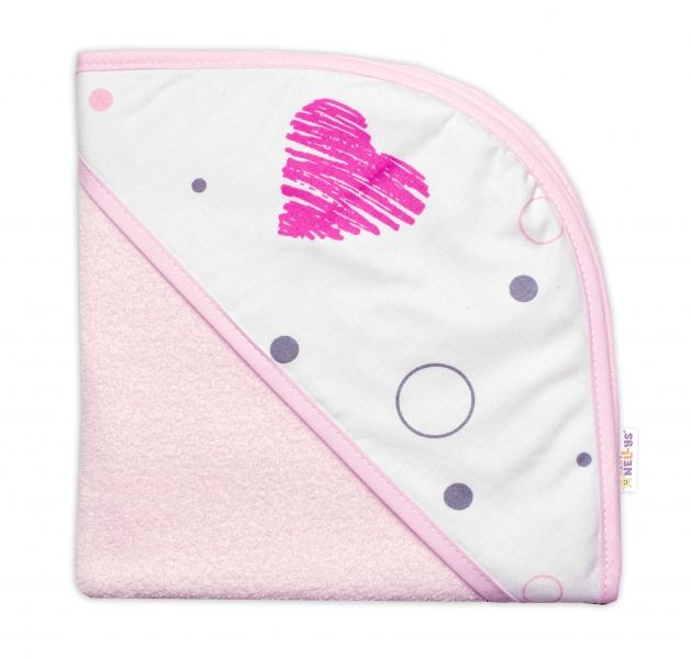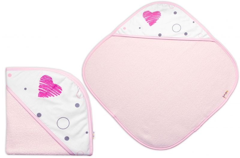Termoosuška s kapucňou pre bábiky, Baby Nellys, I love Girl, 45x45cm, biela/růžová