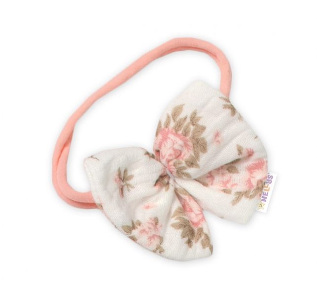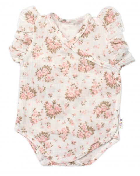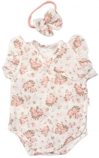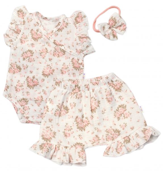 Zavinovacie body, kraťasky + čelenka, mušelín, Pivonky, Baby Nellys, smotanové, veľ. 74